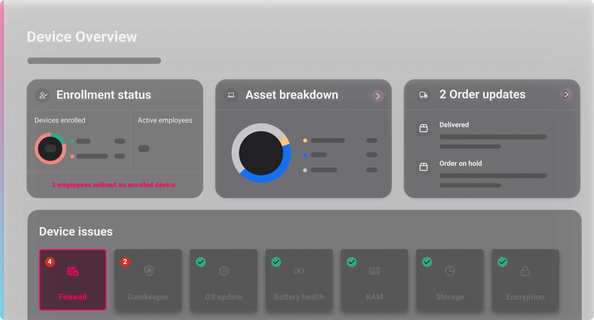 - Asset track lets you see which employee has which device, its health status, and warranty info.