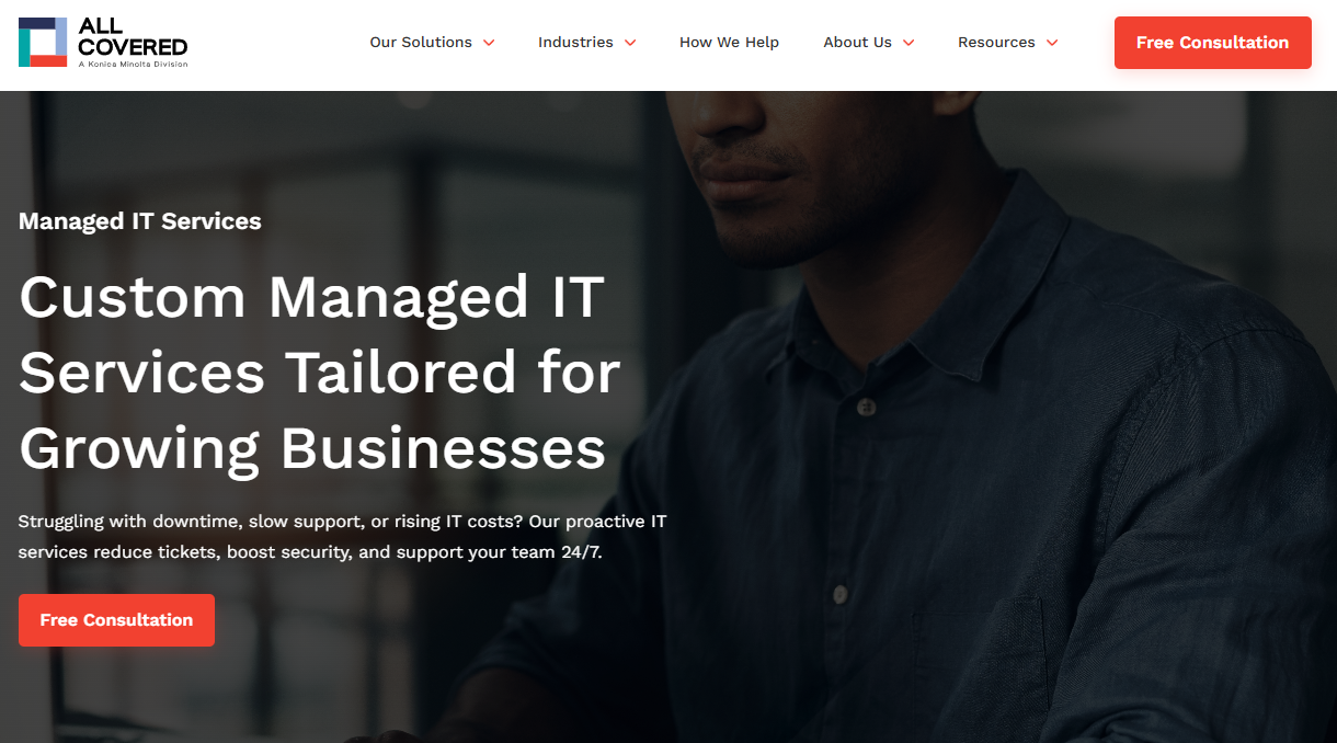 All Covered is the IT services division of Konica Minolta, which operates as a leading nationwide MSP for small to mid-sized businesses. They have offices and staff across the U.S. and offer a wide range of services: