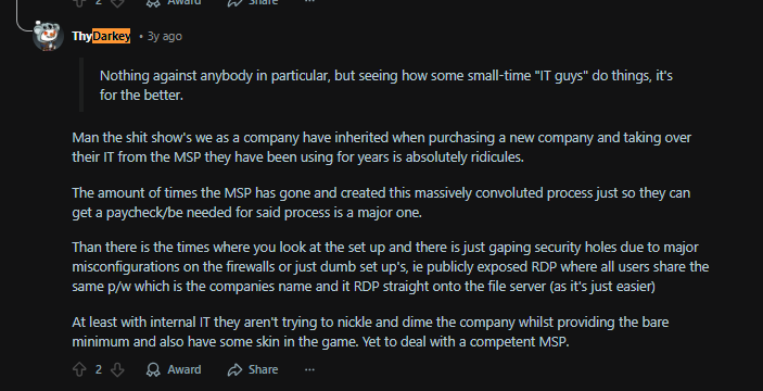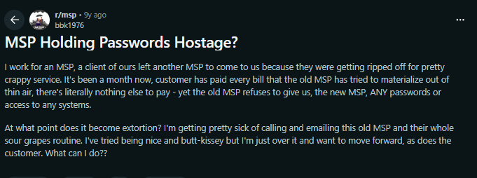 I have seen many MSPs structure things so that leaving them feels almost impossible. They control all admin accounts, keep key configurations out of your reach, or push you toward proprietary tools that only they know how to manage.