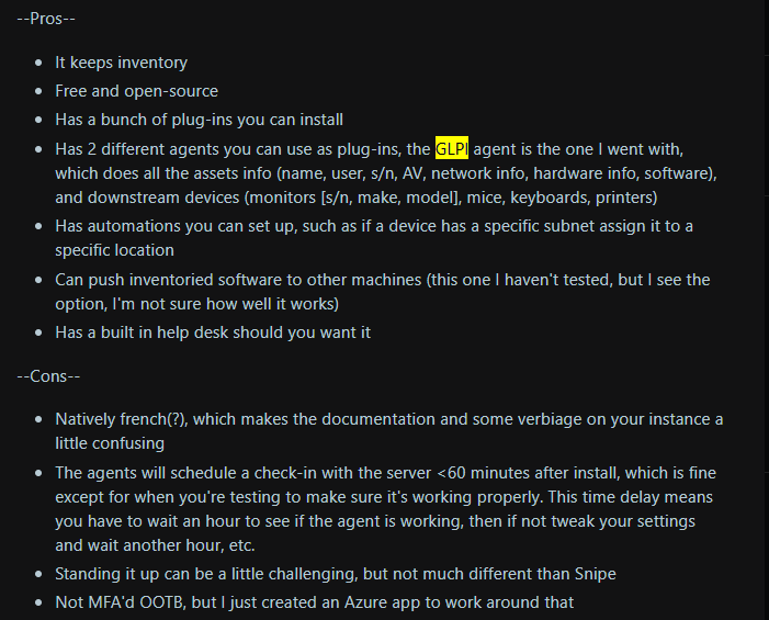 Here’s a Redditor listing pros and cons after using GLPI for inventory management: