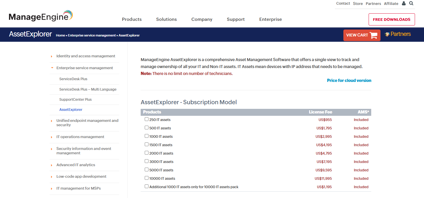ManageEngine Asset Explorer is an on-premises/cloud IT asset management solution. It automatically scans networks (both agentless and agent-based) to discover and inventory hardware and software assets.