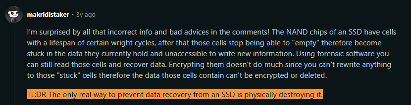 - You want to add an extra layer on top of wiping for peace of mind. (wipe and then destroy)