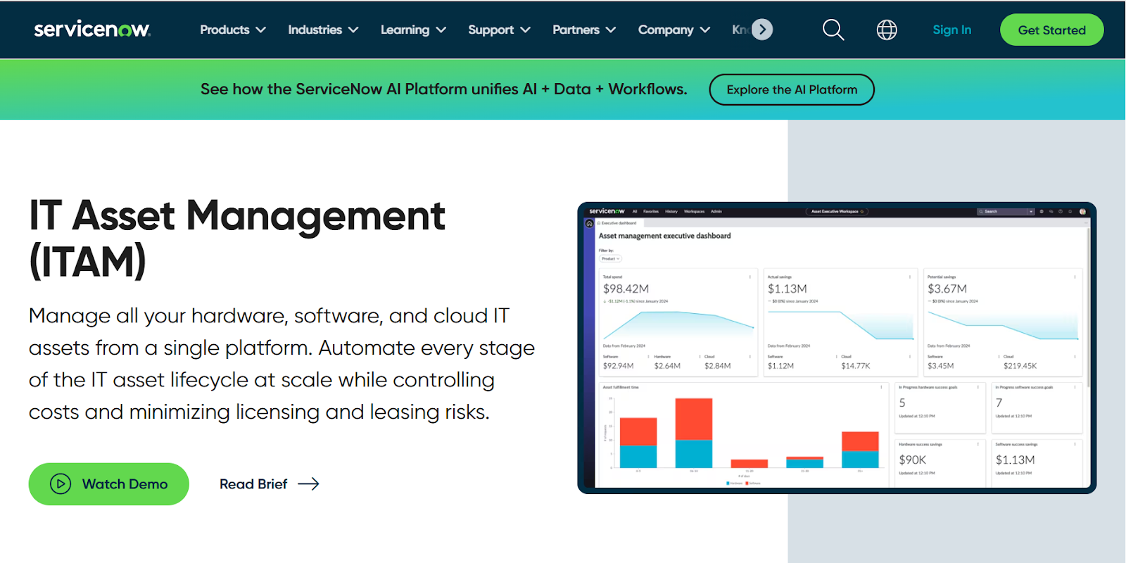 ServiceNow brings a single system of action that tracks, optimizes, and secures every asset end-to-end while minimizing risk and spend.