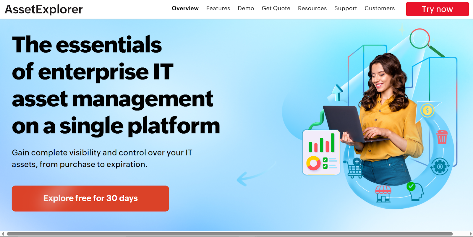 - A free 30-day trial is available that lets you manage up to 250 assets; annual licenses are based on the number of assets.