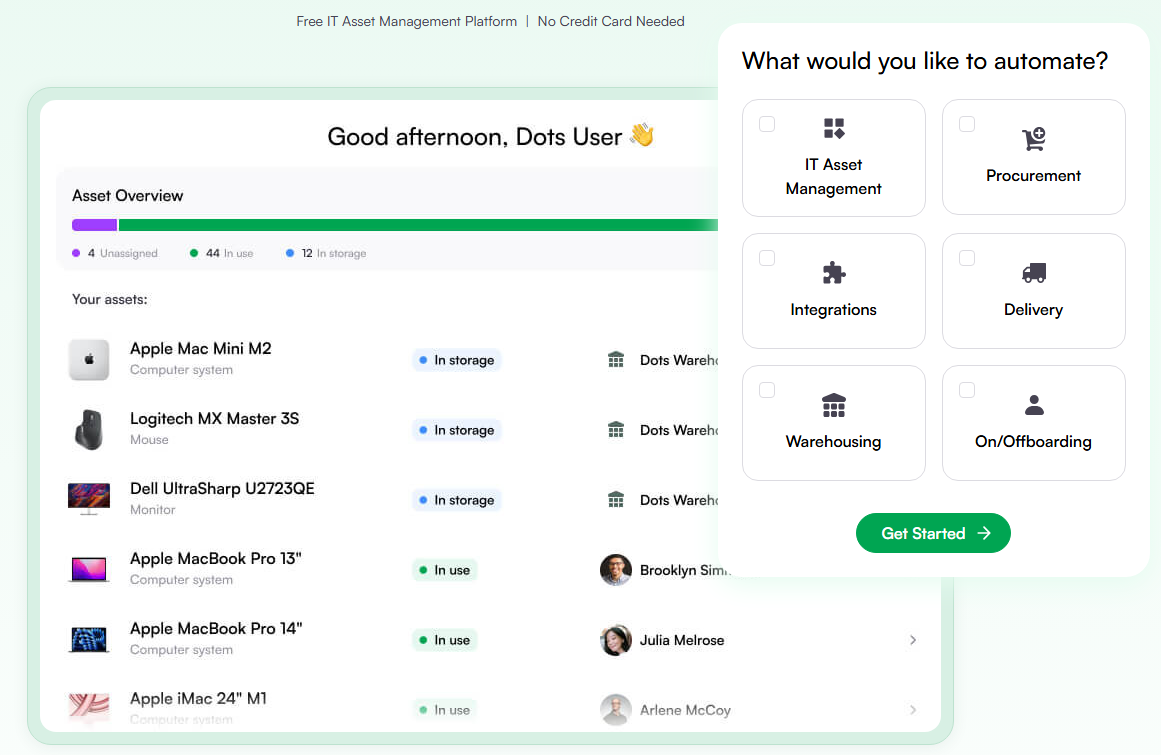 For SMBs, it brings enterprise-grade IT logistics capabilities in a turnkey package (and free to start). You can take advantage of Dotstech’s free trial, which offers substantial benefits in terms of time savings and professionalism during onboarding.