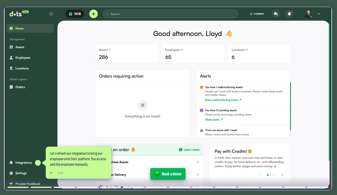 Dotstech aims to replace all patchwork with a unified SaaS platform that automates these workflows. By integrating with existing systems and handling physical logistics, it lets you (IT and HR) focus on strategy rather than chasing FedEx tracking numbers.