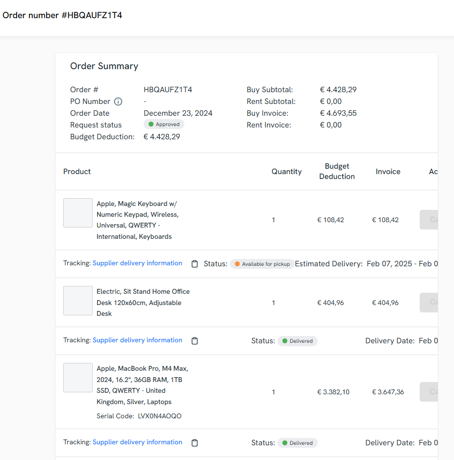 Say a new employee is set to join your company. The IT or procurement team will raise a purchase request based on their role and region-specific requirements.
