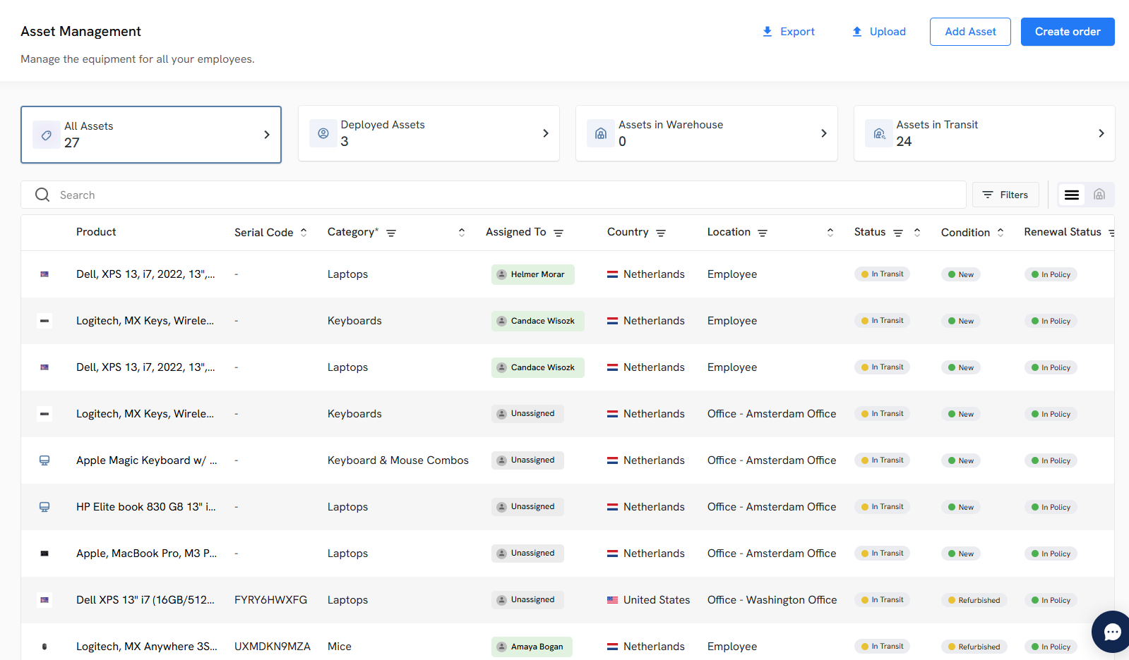 As a global IT hardware management solution, it automates your entire asset lifecycle from procurement to deployment, to retrieval and disposal. Beyond managing the digital side of asset management, Workwize also helps you tackle the physical aspect of IT asset logistics challenges like a pro.