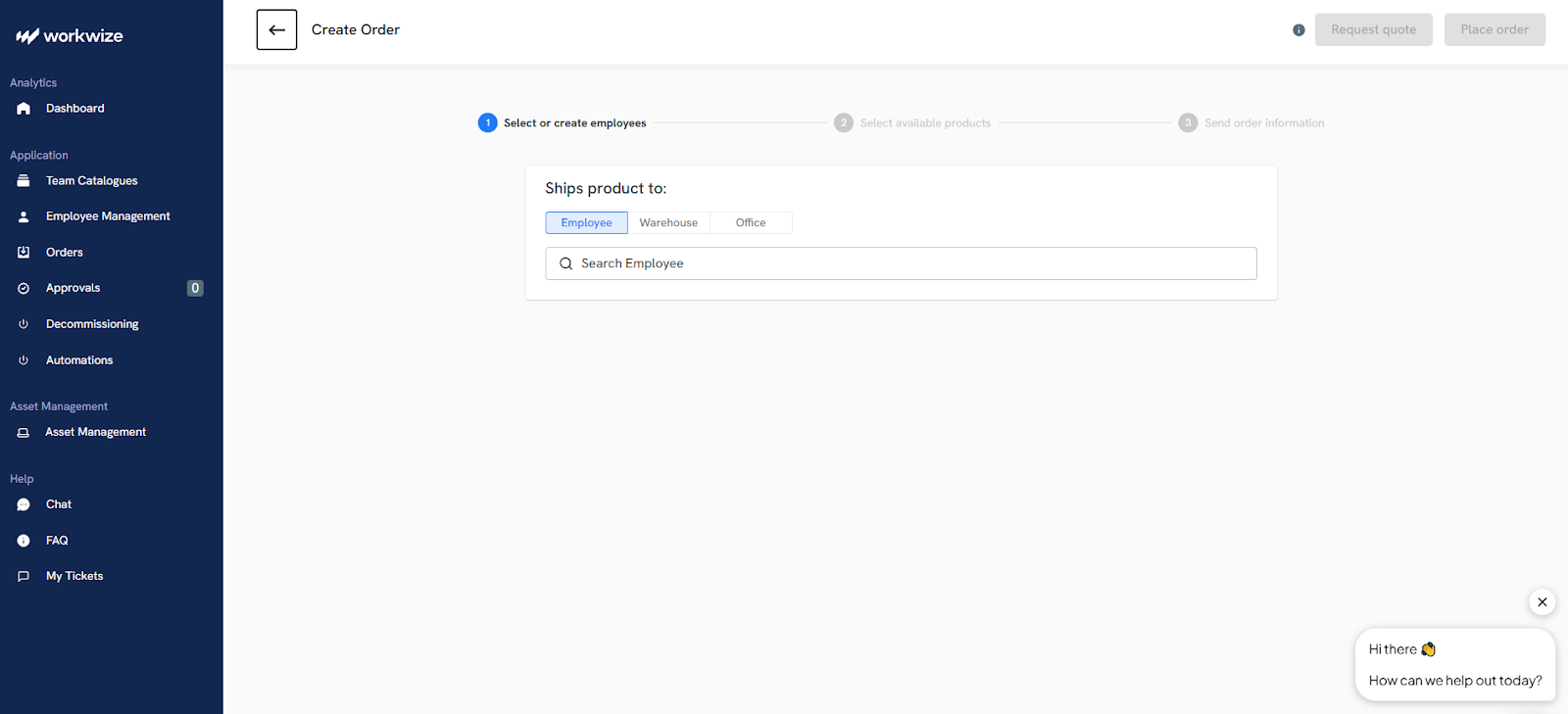 This can happen manually or automatically. For instance, Workwize, an ITAM solution, integrates directly with your HRIS platform (say BambooHR). Whenever a new employee is added to the HRIS, the onboarding workflow is triggered, which initiates procurement.
