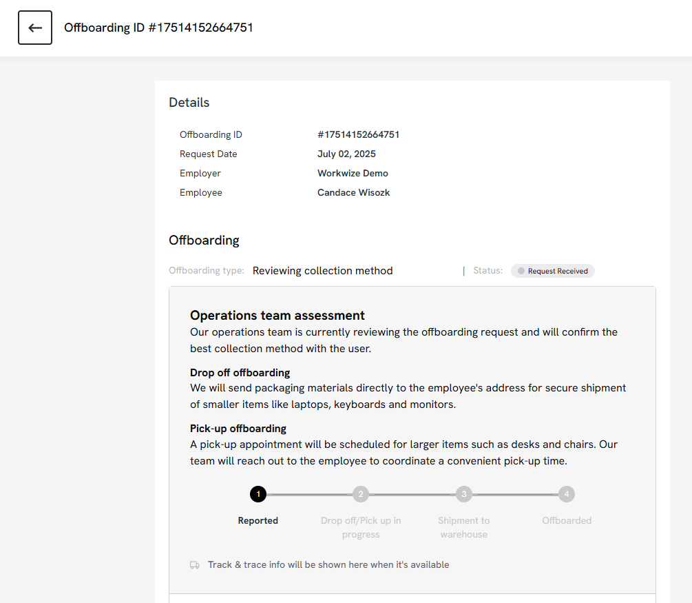 You can also track the offboarding in the orders section in Workwize’s dashboard.