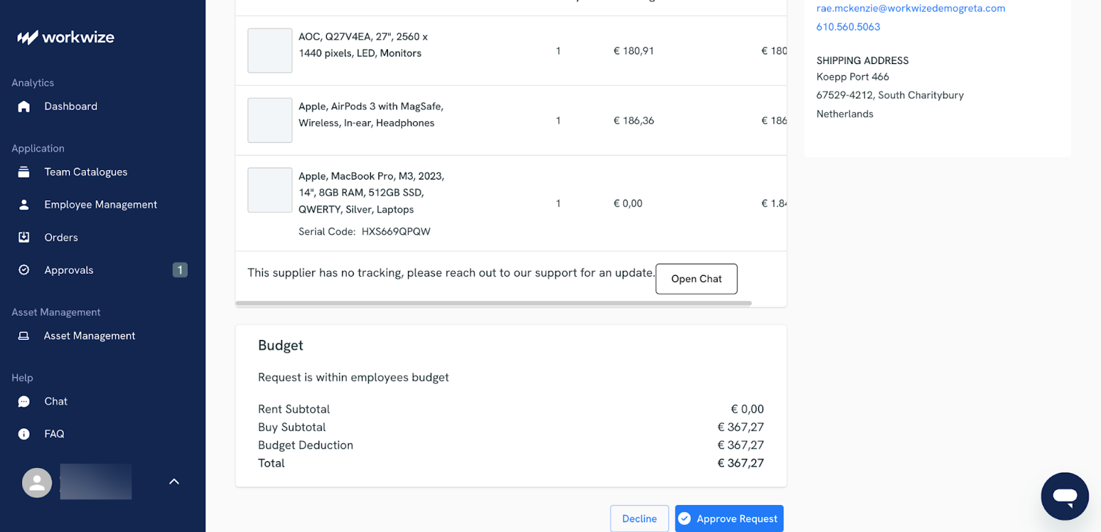 That means when a new hardware request comes in, you can quickly check whether you already have a refurbished device available before approving a new purchase request.