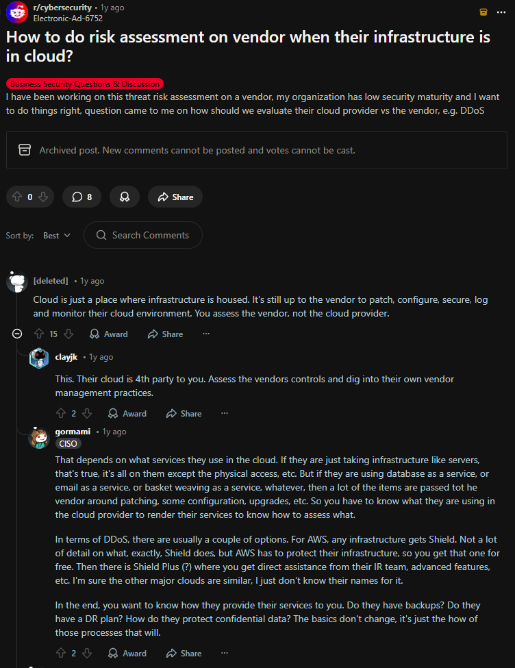 Also, what do you do when the vendor relies on cloud infrastructure?