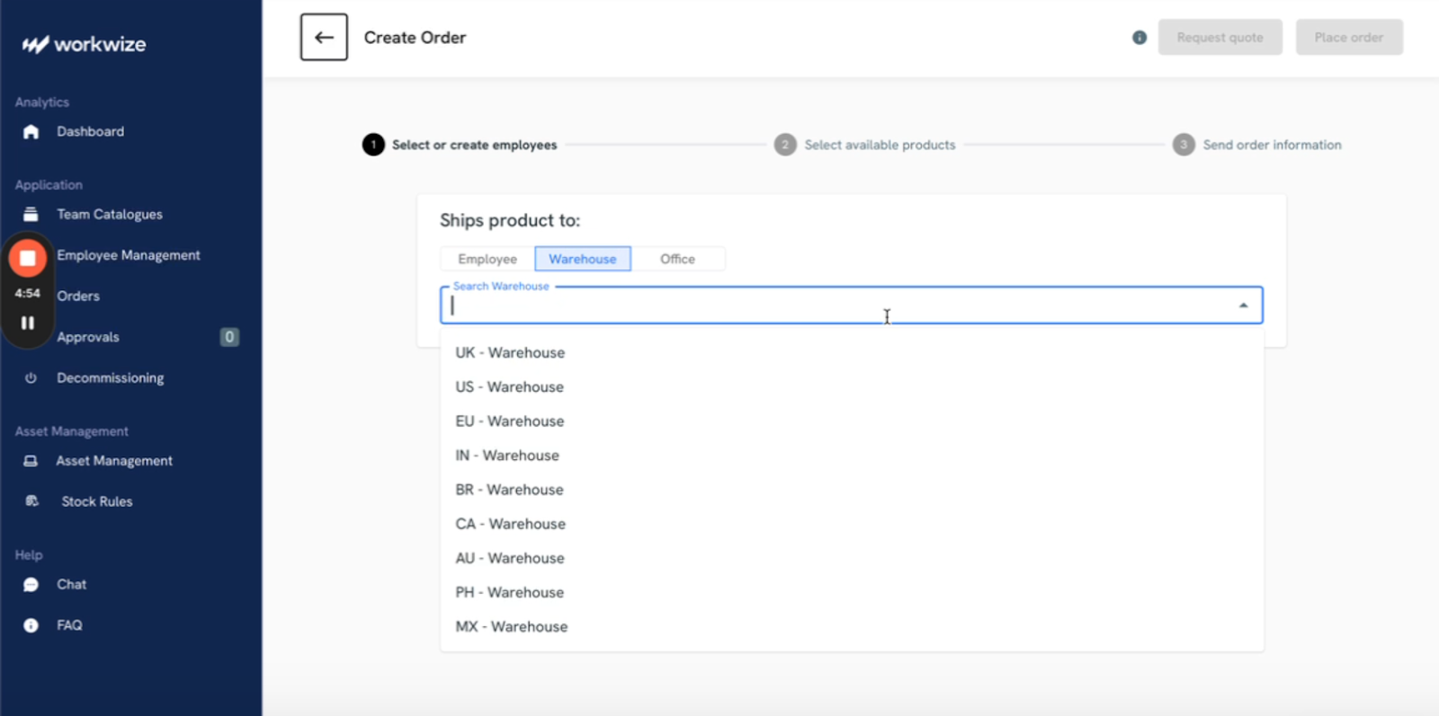 If the employee is located in a country without warehouse coverage: