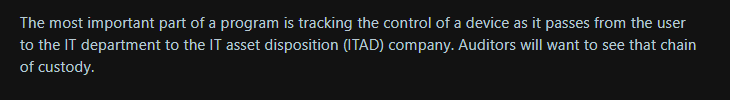 Here’s a Data Erasure expert on Reddit mentioning that the auditors demand chain of custody, which underscores the importance of maintaining this data: