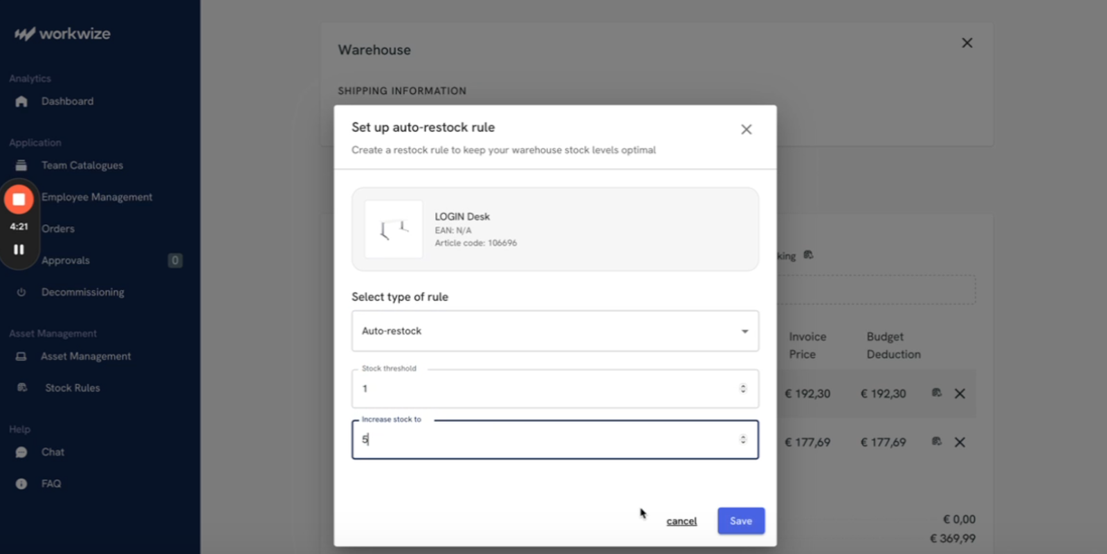 Here’s how you can set up an auto-restock workflow with Workwize: