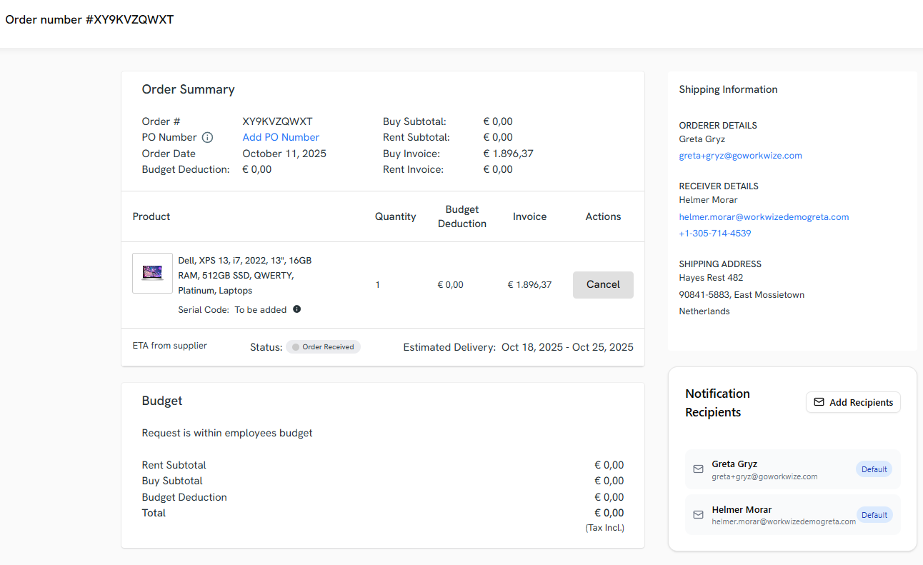- Buy, lease, or rent hardware through the Workwize platform, with options from local vendors worldwide.