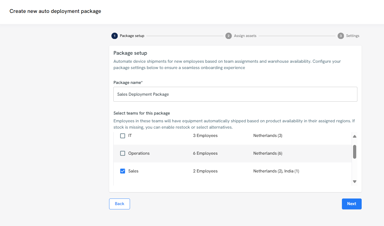 The platform lets you automate deployment by first setting up standardized deployment packages for different teams. For instance, you may decide that sales teams get devices shipped with sales software installed while IT teams get access to a different set of tools.