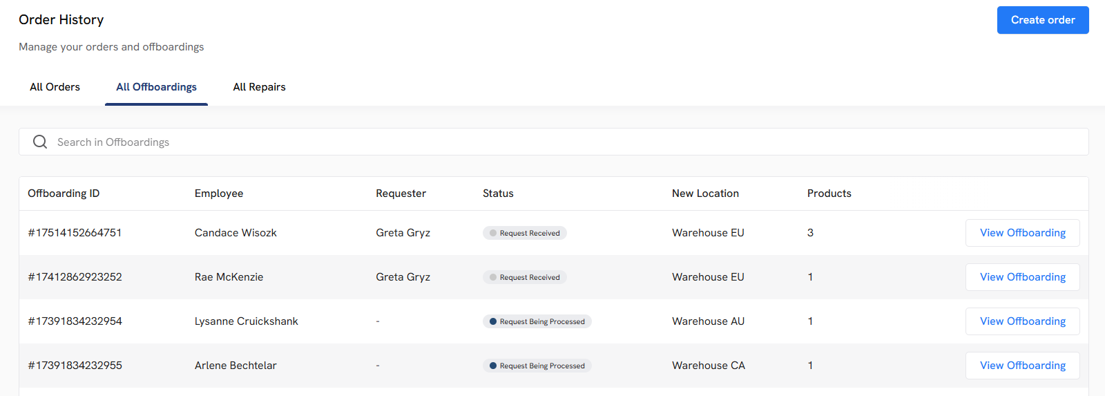 - Retrieval and Disposal: After HR updates the employees’ last day, the offboarding workflow begins. Employees receive the necessary instructions, and you receive real-time updates on the return's status until it safely reaches your desired location.