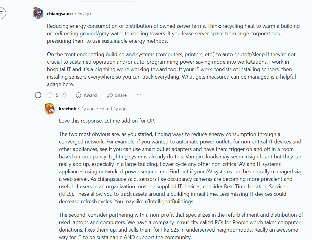 Here’s a helpful Reddit thread discussing other tips to make your IT operations more sustainable:
